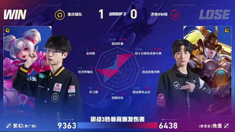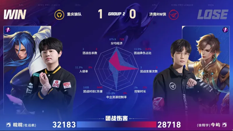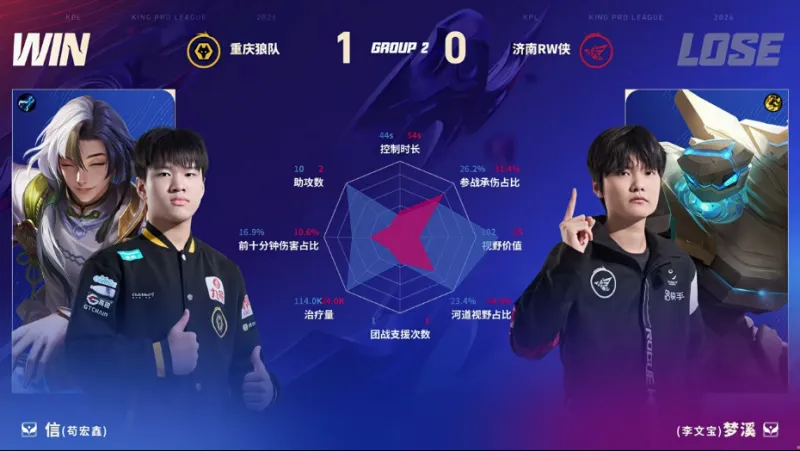 虎扑01月23日讯 狼队/RW第一局数据图:清清白起开团成功率百分百
